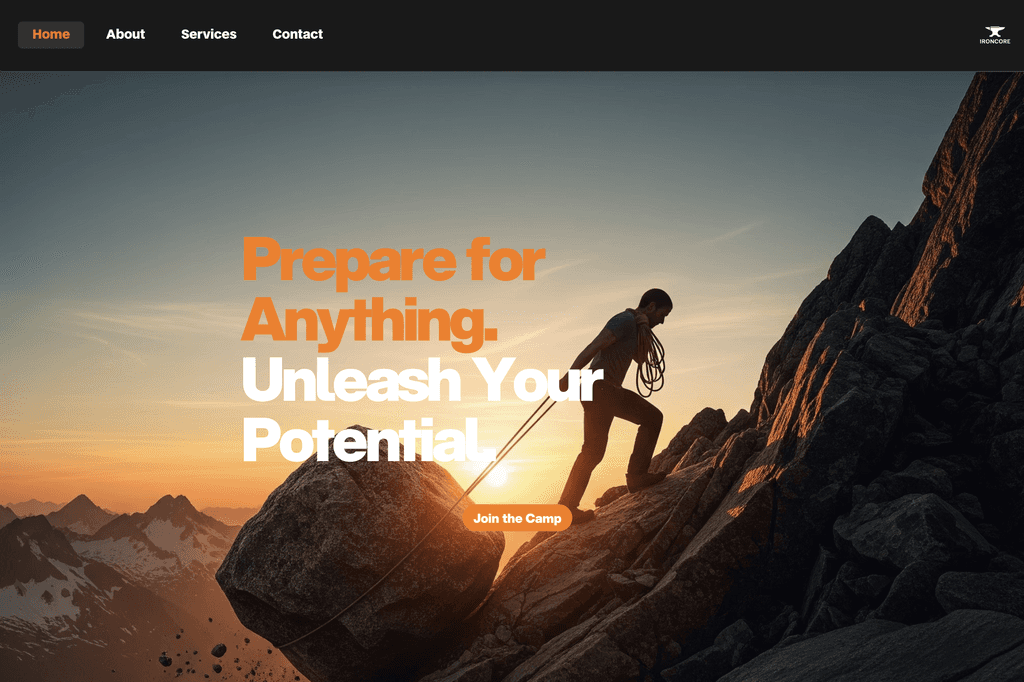 Modern Training Camp Landing Page For Physical And Mental Preparation. Bold, Immersive, And Motivational.